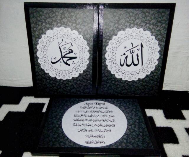 Paket Hiasan Dinding Kaligrafi Lafadz Allah Muhammad Ayat Kursi Black Series - Source