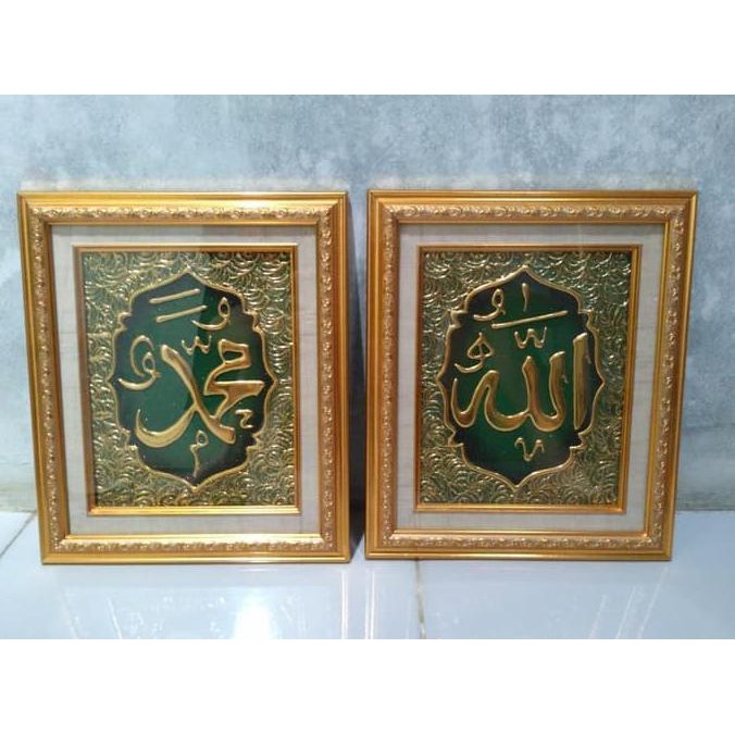 Termurah Hiasan Dinding Kaligrafi Allah Muhammad Warna Hijau Gold Berkualitas - Source