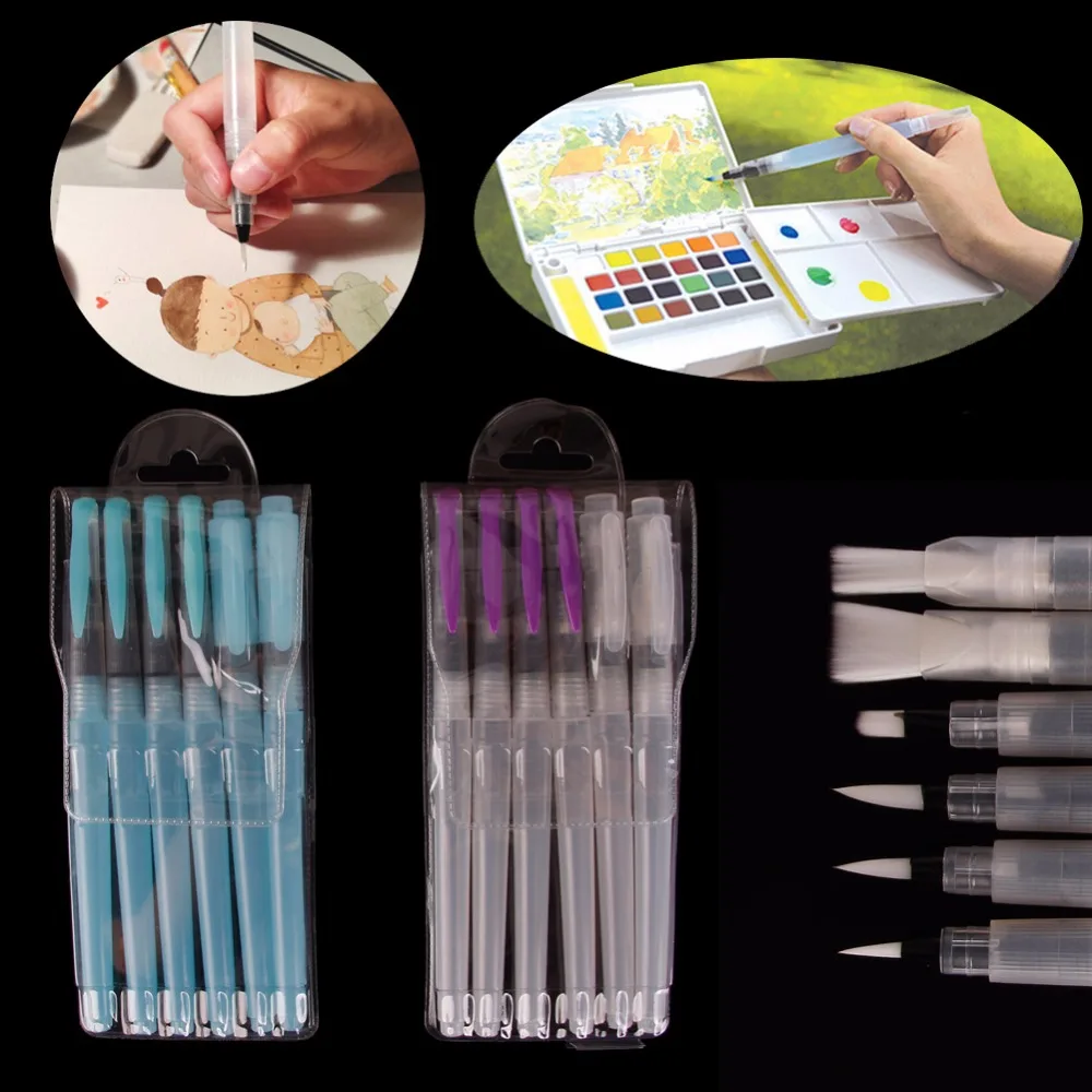 Czs 6 Pcs Set Penyimpanan Air Plastik Sikat Lembut Cat Gambar Kaligrafi Cat Air Pena - Source
