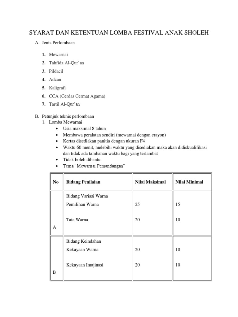 Syarat Dan Ketentuan Lomba Festival Anak Sholeh Docx - Source